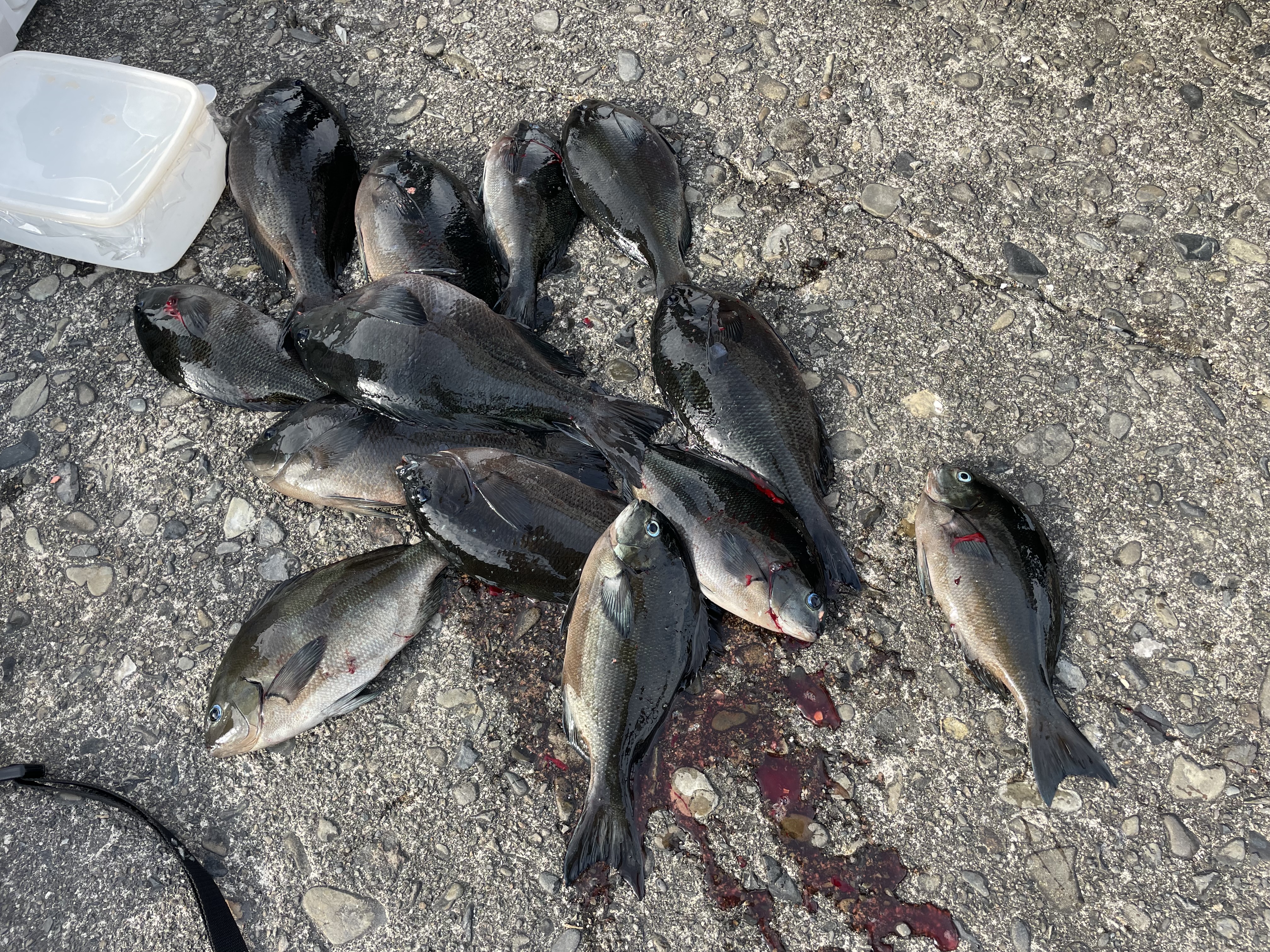 次のお客様の為に釣り終わったら自分の釣り場を落ちた撒き餌など綺麗に流してゴミを拾って帰ってきて下さい。ゴミや余った撒き餌は港で回収出来るので磯に捨てず持ち帰りよろしくお願いします。