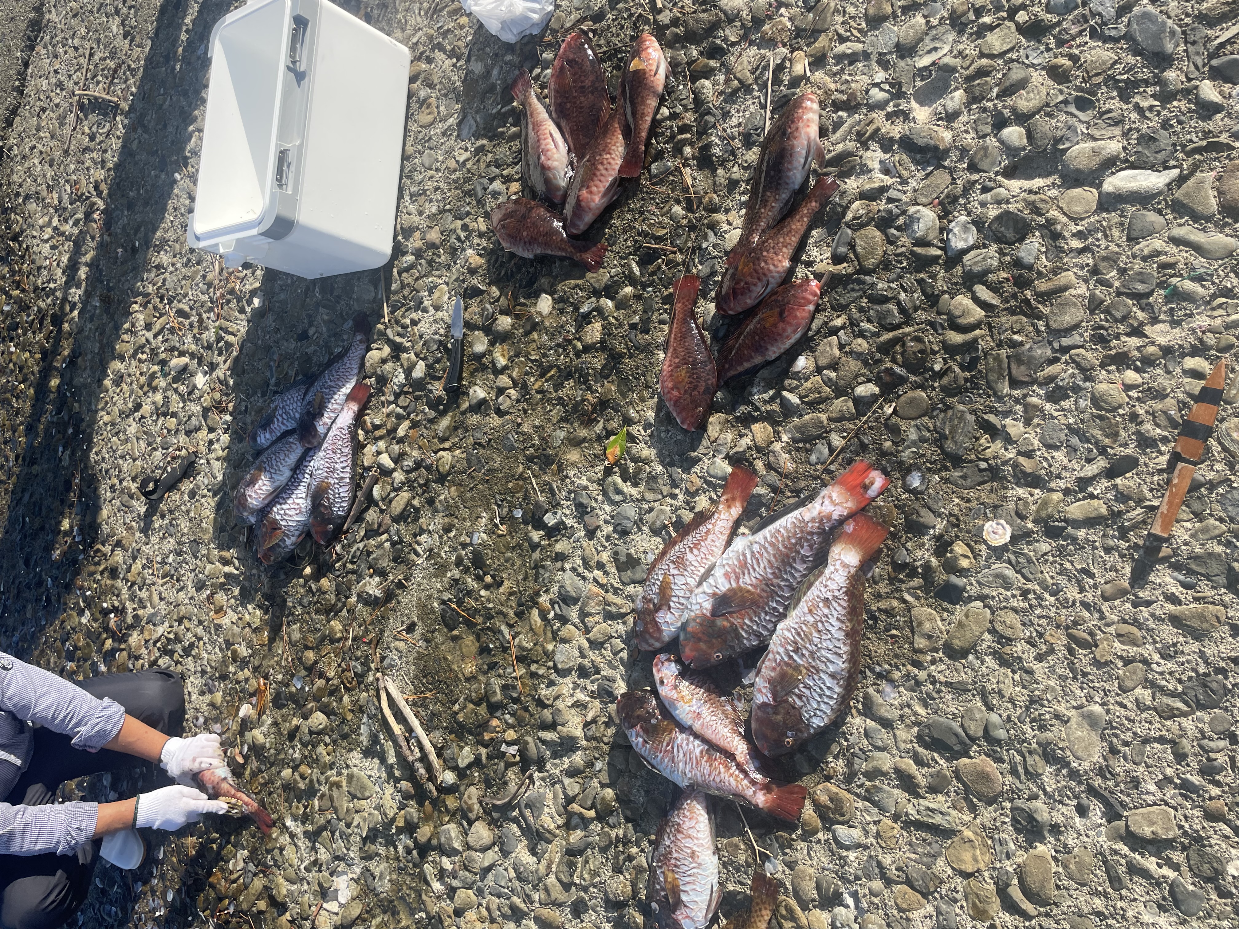 湾内磯 中野様ら 石鯛1匹46cm グレ4匹30cm〜38cm 石鯛は底物仕掛け グレはフカセ ウニ オキアミ |